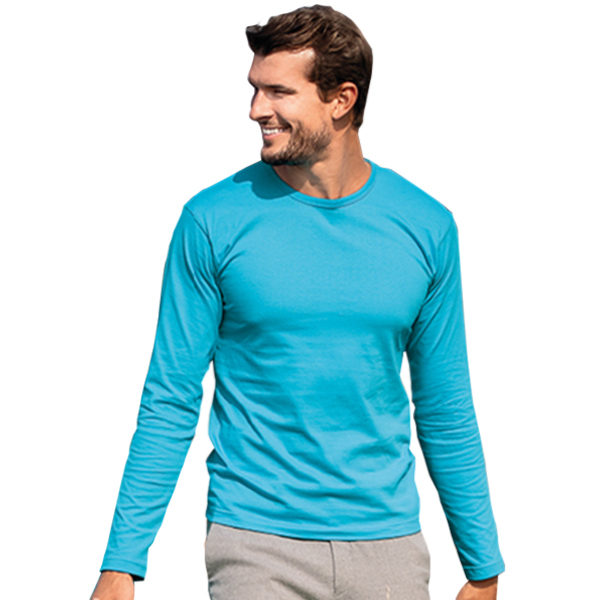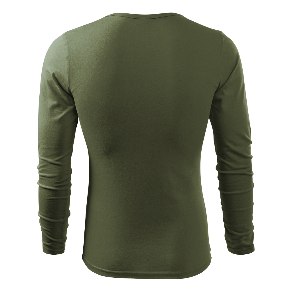 Kvalitní lehce vypasované pánské tričko s dlouhým rukávem, kulatým výstřihem a s bočními švy. V průkrčníku je zpevňující elastická lemovka z žebrového úpletu v barvě trika a saténová etiketa. Jemný, ale velice odolný bavlněný materiál je příjemný na nošení.